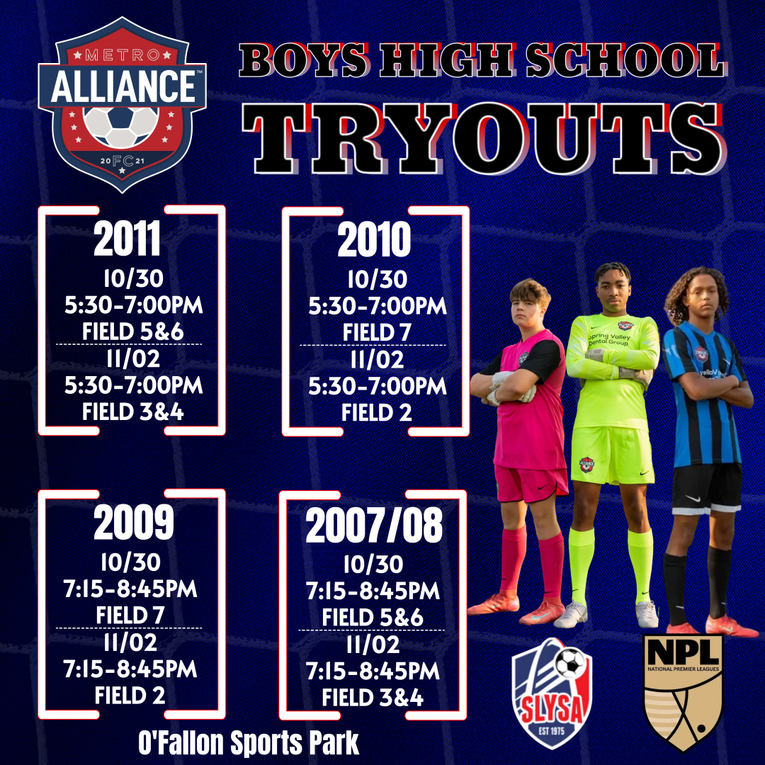HIGH SCHOOL BOYS 2025/2026 tryouts Metro Alliance FC is excited to host Tryouts for the 2025/2026 season. Register today and Join the metro alliance family Register for 2025/2026 Tryouts